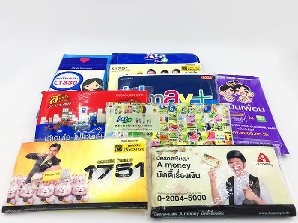 ซองทิชชู่ที่สามารถปรับเปลี่ยน พิมพ์รูปภาพหรือโฆษณาได้ตามที่ลูกค้าต้องการ เหมาะสำหรับการแจกแทนใบปลิวเพื่อให้ลูกค้ารับข้อมูลโฆษณาอย่างเต็มใจ